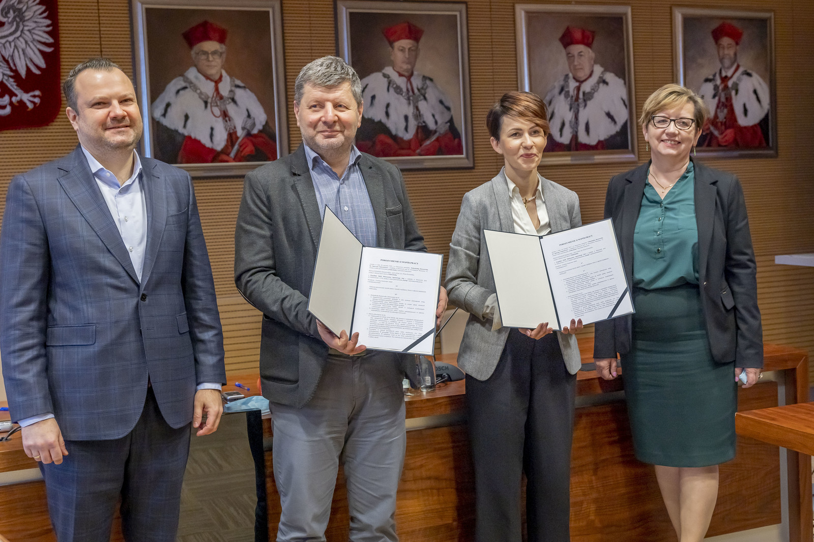 Od lewej: R. Kalisz, prof. P. Koszelnik, mgr E. Greszczuk-Sokół, prof. PRz I. Włoch,